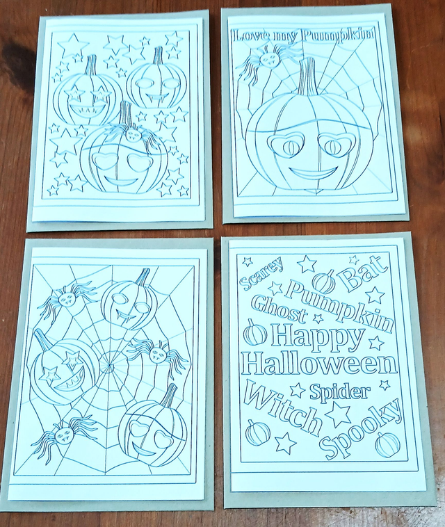 Happy Pumpkins colour in greetings cards - 4 pack